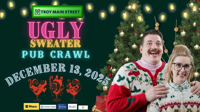 DetailsGet ready to rock your most ridiculous reindeer sweater, Troy! Troy Main Street’s 2nd Annual Ugly Sweater Pub Crawl is back and it’s brighter, and tackier than ever! Grab your friends, throw on your most over-the-top holiday gear (bonus points for lights and jingles!), and join us for a night of festive fun downtown. Enjoy…