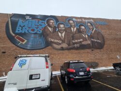 The Mills Brothers were the first African American artist to have their own national radio show and were one of the most successful American groups of all time, with 71 chart singles such as “Paper Doll”, “Glow Worm”, and “You Always Hurt The One You Love”. The band was made up of four brothers, Harry, Herbert, John Jr., and Donald Mills. They were born and raised in Piqua, Ohio and made their amateur debut in 1924 at the Mays Opera House in Piqua. This performance marked the beginning of the Mills Brothers’ trademark style of using their voices to mimic musical instruments such as horns, trumpets, and even tubas, all alongside flawless vocal harmonies. This historic band is now memorialized with a mural in Downtown Piqua on the side of the Park National Bank building.
